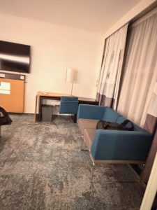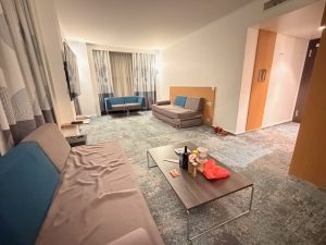 The living room of our Superior Suite in Novotel Geneva