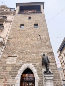 We continued our tower tour by descending the spiral staircase to the halfway point (where the bells were), from here we followed the signs and headed across a bridge linking both towers that is constructed just underneath the roof of the main cathedral building. This bridge brought us to another set of spiral staircases, which led us to the top of the north tower. At the top of the spiral staircase in the north tower is a wrap-around balcony that offered us a 360° panoramic view of the city and Lake Geneva. Seeing the medieval buildings in Geneva like blocks and blocks of LEGO building that span as far as the eye can see was an amazing sight. We could also vaguely see Jet d’Eau spouting out from Lake Geneva from here. On a clear day, we would be able to see Jet d’Eau more clearly and how large the city is. We spent a considerable amount of time up here looking at the city and the places where we will be visiting. Before long, it is time for us to descend the tower to our next destination.