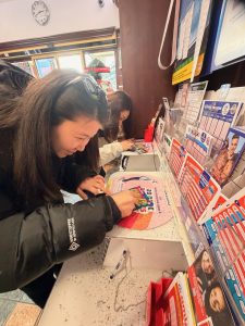 My friends doing some last minute shopping in Geneva