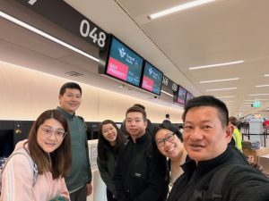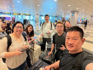 My friends with their sad faces after checking into our flight back home