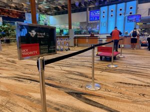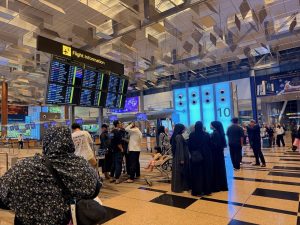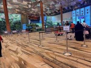 Saudia departs from Singapore Changi Airport Terminal 3, with its check-in counters in row 10 on the right side of the terminal building. The nearest door to Saudia’s check-in counter is door 7. Saudia operates six check-in counters with two dedicated to Business Class and Sky Priority members, which open 3 hours before flight departure. The airlines also have an early check-in counter that opens 4 hours before the flight. Since Saudia only offers Business and Economy Class on flights departing from Singapore, the airline sets up two queues for each class. As we were at the counter shortly after they opened, there was only one group in front of us at the Business Class line. The ground crew checking us into our flight was very friendly and greeted us with the warmest smile anyone could ask for. She meritoriously processed our check-in with great efficiency, while lightening the mood with a jovial conversation. Before long, we were given boarding passes for both of our legs of the flight. The ground staff also gave us crucial information such as the location of the lounge, the location of our boarding gate and the most efficient way of getting to our gate. She also reminded us of the boarding time.
