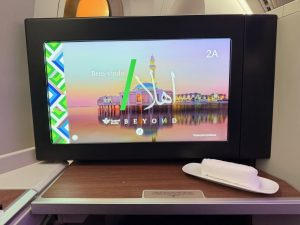 The service onboard this leg is as good as our outbound leg. However, I find the cabin crew of Southeast Asian origins were warmer than their Arabic counterparts. The cabin crew working on our aisle was friendly and chatty, and no request seemed too troublesome for her. The Arabic crew who were working on the centre seats were also spotted taking care of their passengers well. They would stop by the passengers under their charge with extended conversations on multiple occasions, and constantly patrolled the cabin to ensure these passengers were well taken care of. The onboard chef, Osama, went around the cabin introducing himself to the passengers during Arabic coffee service. Osama was very friendly and checked if we liked the food that he prepared. I have seen him (during my waking hours) helping the cabin crew serve the meals. Like our outbound leg, the cabin crew approached us as soon as we settled in our seats to serve us a welcome drink and hot towels. They did not wait till everyone settled in to perform this service, which somewhat makes this service personalised. Like the outbound leg, cabin crew worked like clockwork, taking meal orders and our preferred meal timing. The Indonesian cabin crew was also very observant, who quickly approached me after I woke up to check if I would like to have my breakfast served.