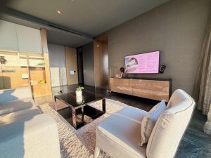 We originally booked the SO/ One Bedroom Suite, the second-lowest-tiered suite in the hotel. To our surprise, SO/ Bangkok gave us a two-tier upgrade to the SO/ Lofty, the second-highest tiered suite in the hotel. The 99㎡ water-themed SO/ Lofty Suite is one of the four elemental themes on which the hotel designed its rooms. For those who prefer the higher floor, water-themed rooms sit on the top few levels of the hotel.