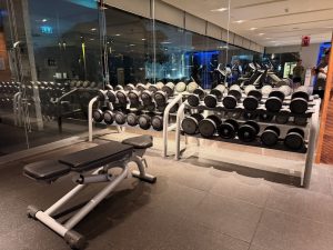 The gym in SO/ Bangkok is located on the 10th floor in front of the swimming pool. For a gym of this size, I thought the number of pieces of equipment and the range of workouts that can be done in the gym were rather limited. For cardio workouts, the gym is equipped with three ellipticals and treadmills, and four stationary bikes facing the swimming pool, allowing only a limited number of guests to use at any one time. Other than the free weights at the end of the gym, guests who wanted to do some strength training were limited to a couple of back machines, two leg machines, and a functional workout machine. I was rather surprised to find a small studio inside the gym.