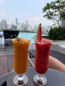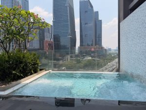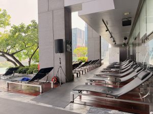 SO/ Bangkok has a beautiful infinity pool that overlooks the Lumpini Park. Perched on the 10th floor of the hotel and looking out of the park, swimming in the lap pool felt like swimming in the sky amidst the greenery below the hotel. The swimming pool is large enough for guests to get some decent laps, and a small, separate jacuzzi pool at the end of the pool on the sundeck for guests to relax. In terms of sundeck chairs, about 1/3 of the poolside space is cordoned off for poolside bistrol, leaving 2/3 of the space for sundeck chairs. Despite not being blocked by vegetation, suntanning in the morning can be challenging. The swimming pool will only receive sunlight in the afternoon due to its orientation. It doesn’t help that only a handful of sundeck chairs are arranged in the sun, with the majority of them hiding under the shade. The orientation of the hotel also meant the pool can be quite cold when swimming in the morning.
