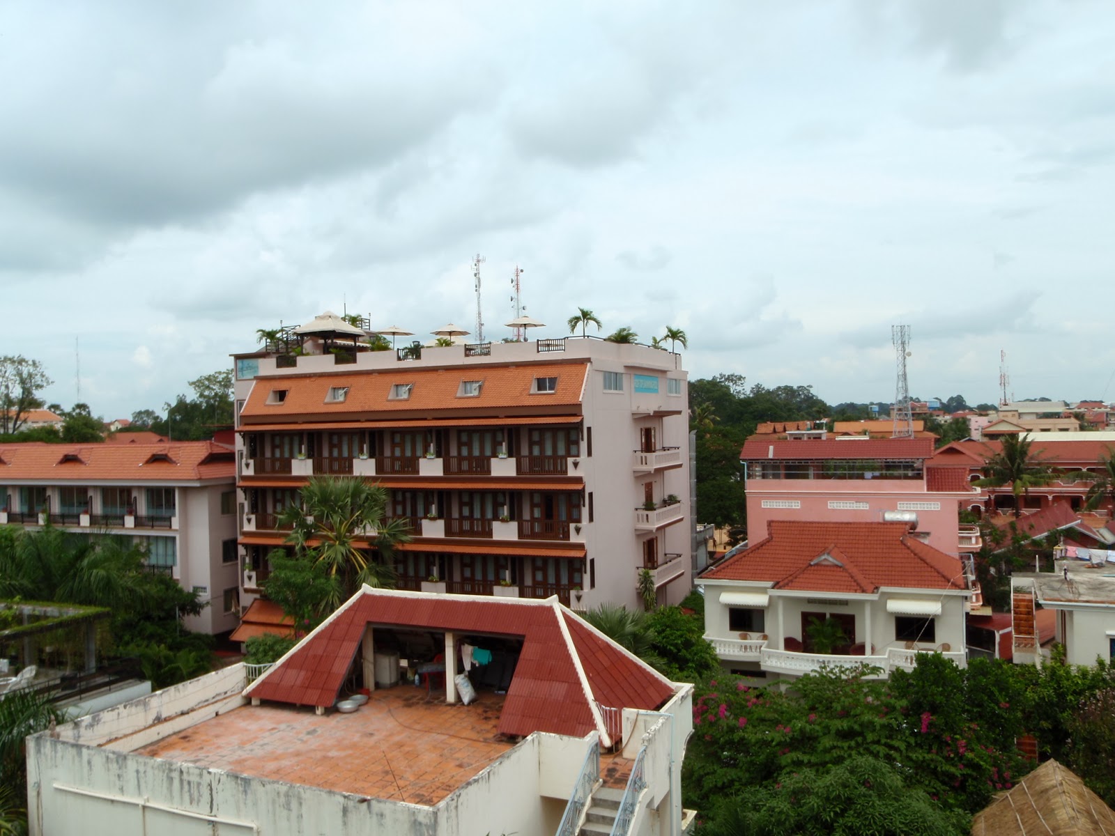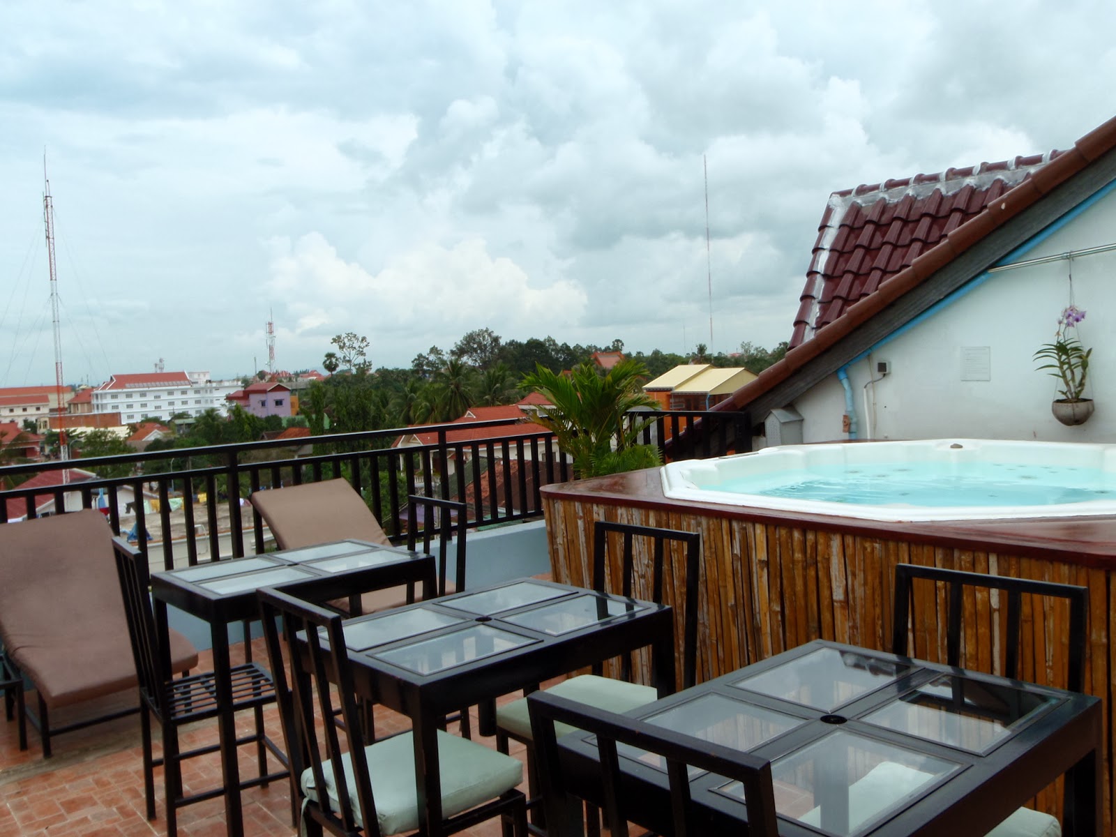 The hotel has a rooftop bar and a jacuzzi at the rooftop. From the roof, one can see the surroundings. Most of the buildings in Siam Reap are rather a low rising, hence from the roof one can see most of the town.