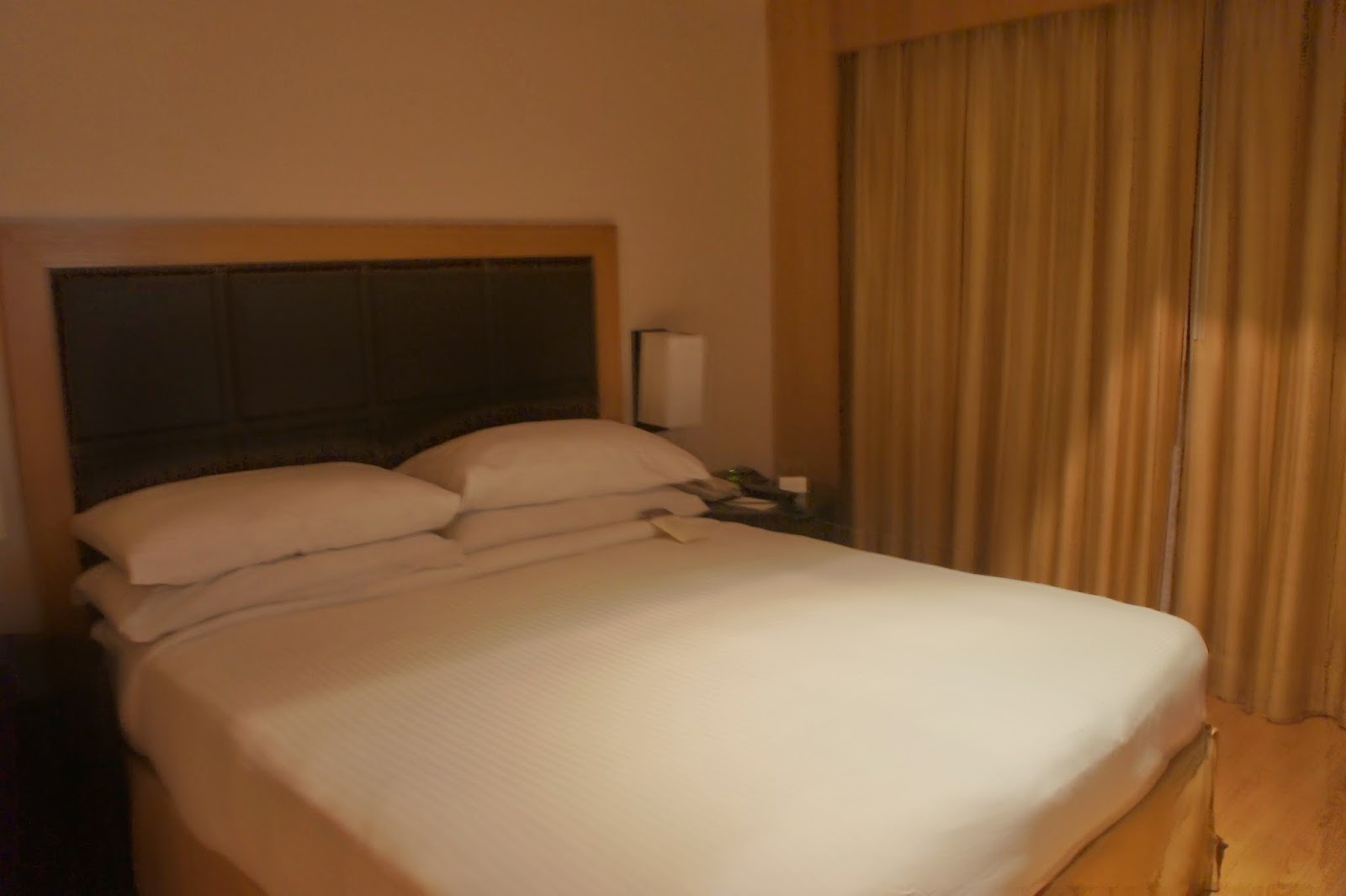 Further into the room, one can find the king-size bed, a couch tucked at the far corner, next to the ceiling to the wall glass panel, as well as a study desk. The TV is situated opposite the bed as with other hotels. The study desk seemed to be clattered with all sorts of pamphlets and information on the hotel, which means one would have to clear the table to do some work. The sleep on the bed was fair, however, it serves its function by providing guests with a night of decent night sleep. The pillows are however too soft for my liking. Lighting for the whole room is just nice, not too bright and not too dark.