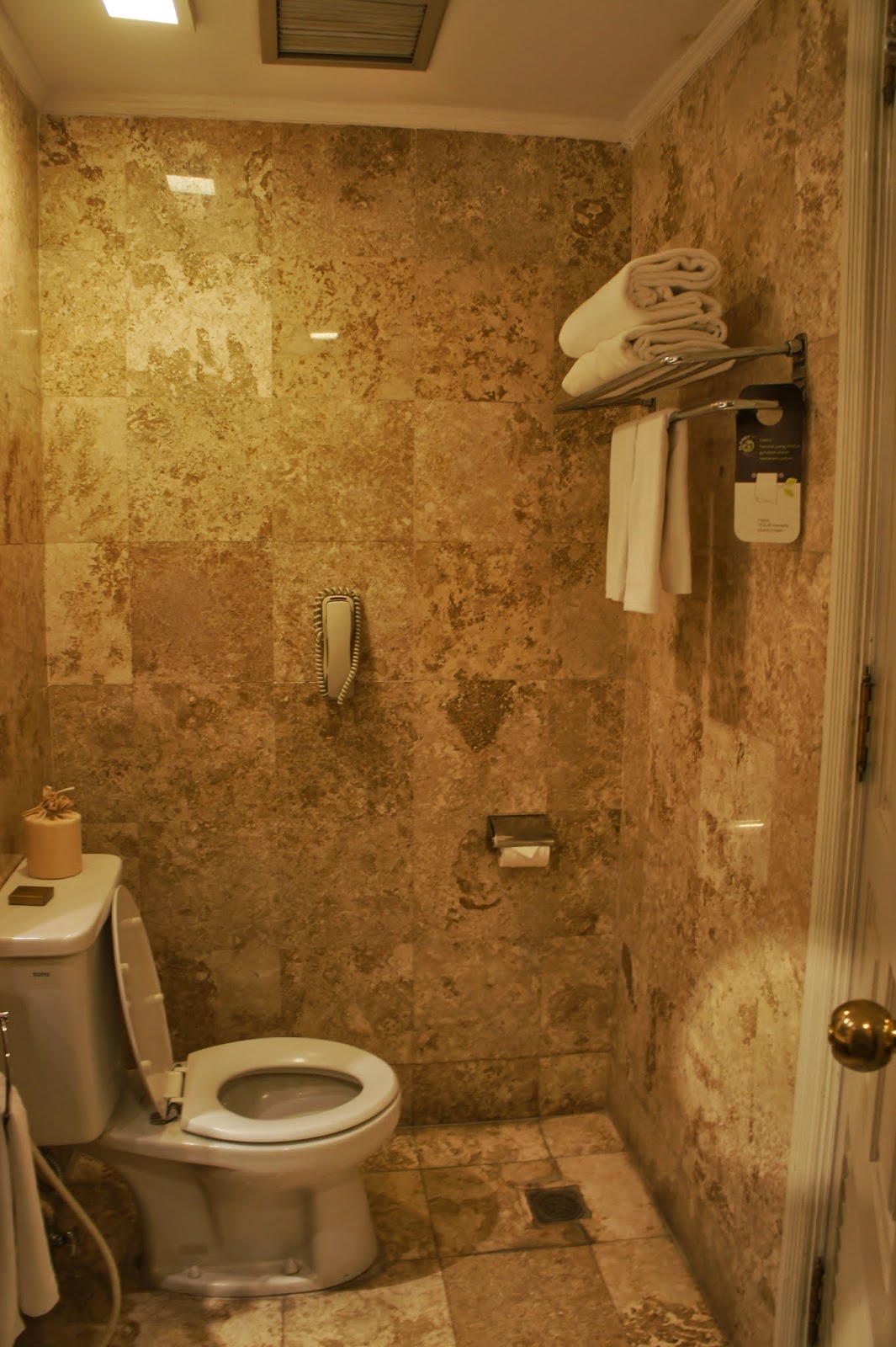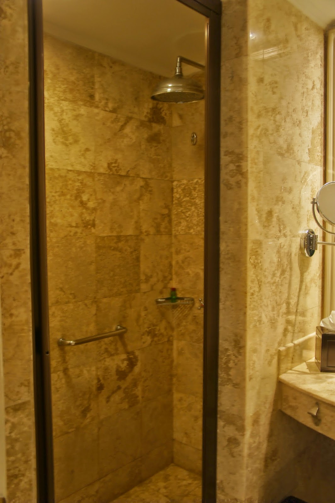 The bathroom is decent in size, decked in brownish marble. It does not come with a bathtub. Upon entering the bathroom, one can find the toilet bowl to the right of the door. To the left of the door is where the sink is located. One can find the walk-in rain shower, which provides great pressure and certainly gave me a great shower.