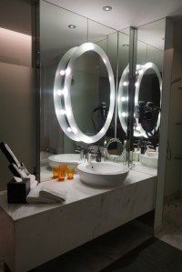 | Sink area with a large Hollywood style mirror |