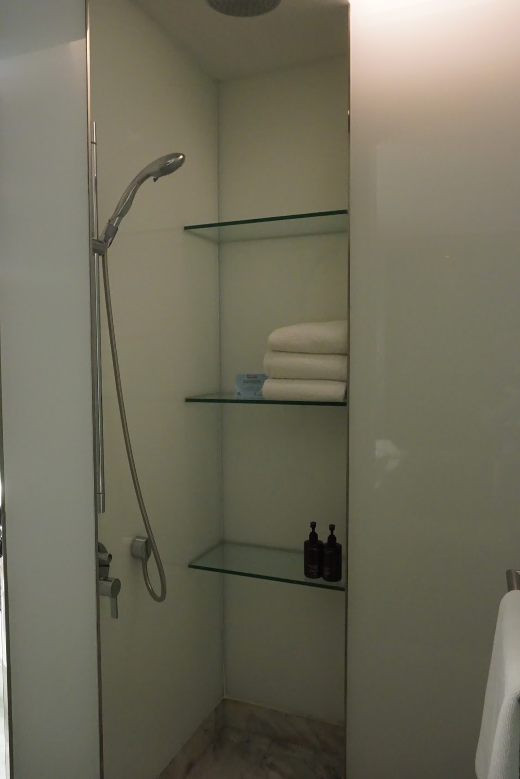 | Standard shampoo and shower gel in the walk-in shower. The quality of these feels cheap and does not give guests paying S$1200++ per night a premium feel |