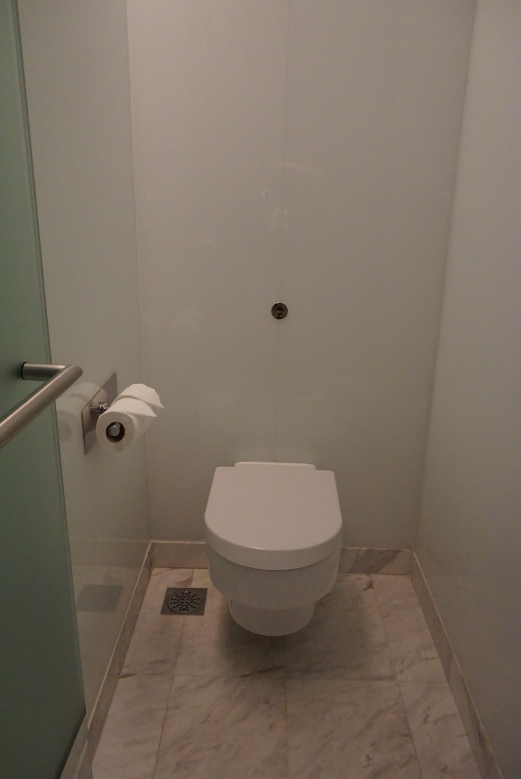 | The dark toilet next to the main entrance of the suite |