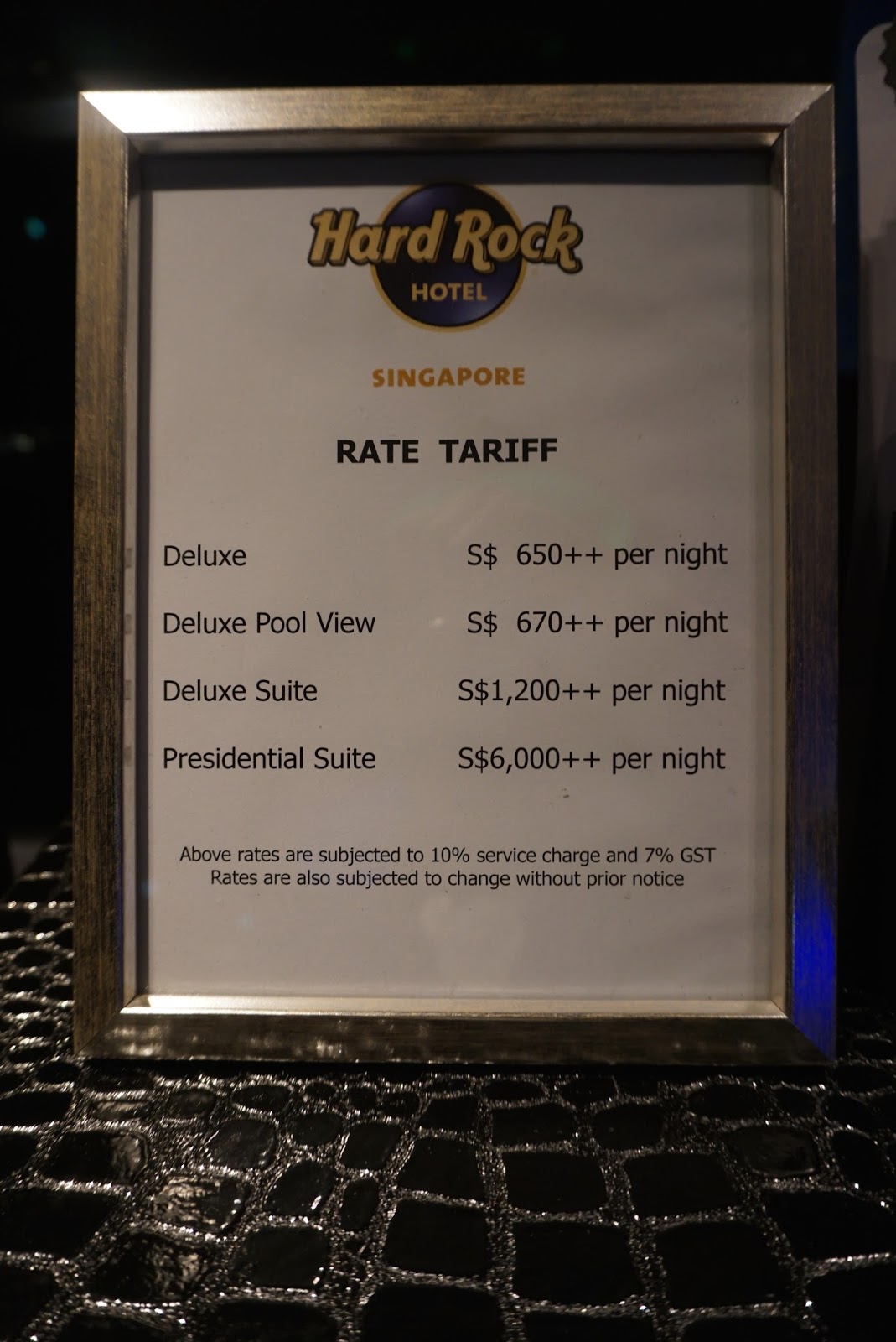 | Charges of the rooms in Hard Rock Hotel Singapore |