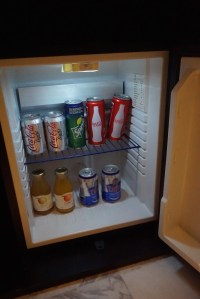 | Minibar. The price of the drinks are rather expensive, a can of coke will set guests back by S$6. |
