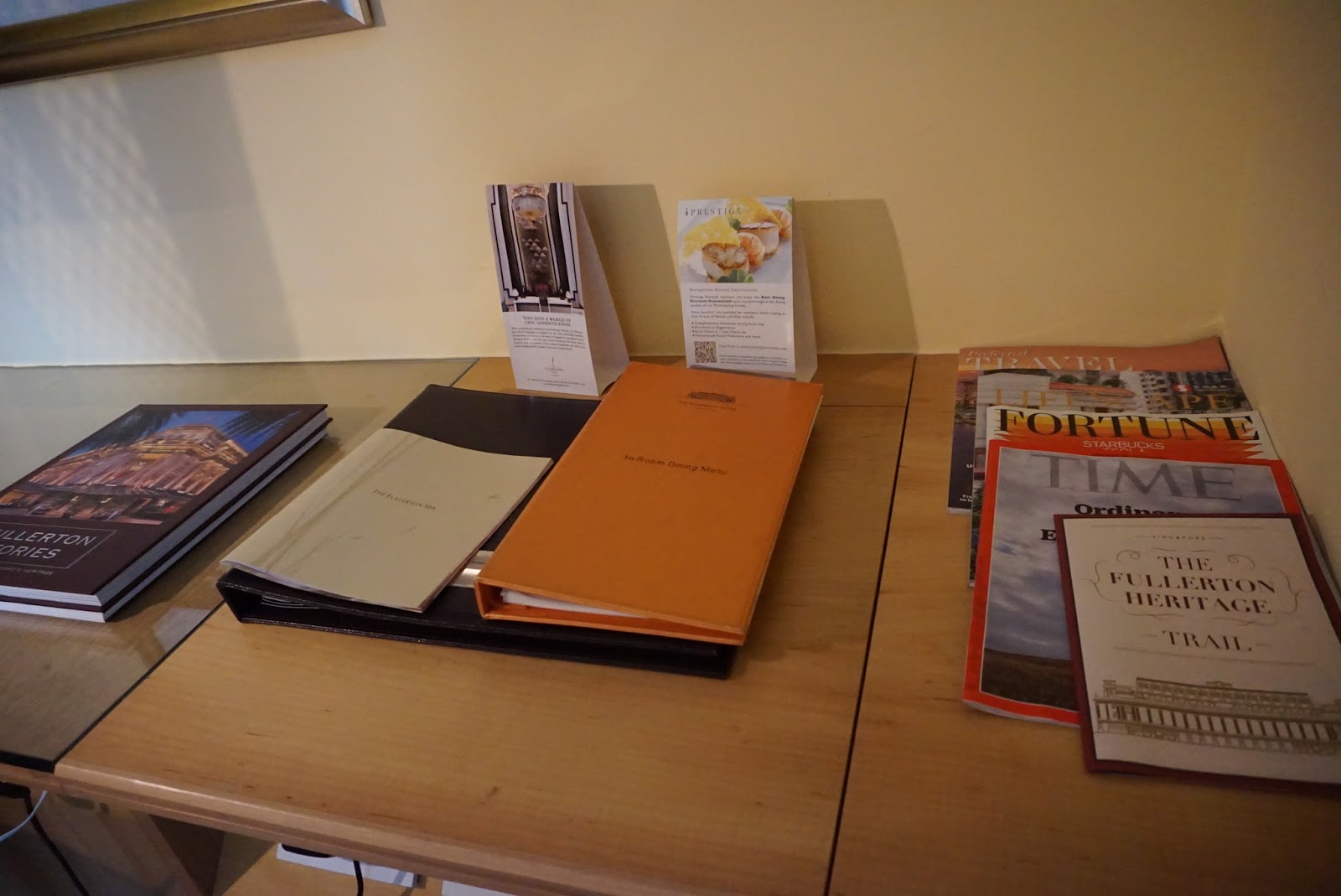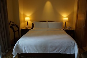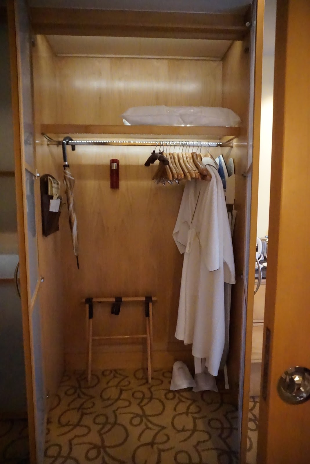 I checked into the Postmaster Room during my stay at The Fullerton Hotel. The earthy tones of light brown and beige colour running throughout the room elude a cosy feel for guests entering the room. The three-panel wardrobe resembles a traditional Japanese door, with white panels and thin wooden trimmings. Although occupying but a small part of the room, the wardrobe is large enough for guests to put away one week worth of clothing. The panel immediately next to the main entrance has shelving and drawers, which gives ample space for guests to put away smaller pieces of clothing. Guests can also hang up their clothes in the two-panel wardrobe next to it. A small foldable stool can be found inside this part of the wardrobe for guests to put their cabin-size luggage onto. I was able to put away my duffle bag on the stool and have the wardrobe doors closed.