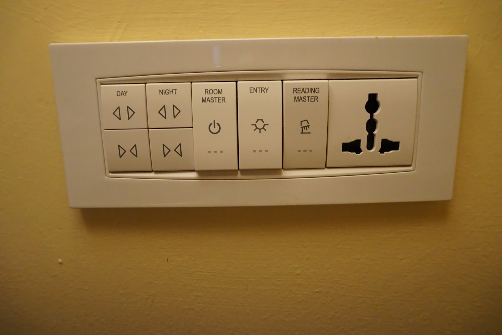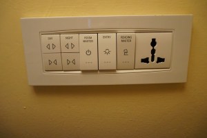 | This panel is located on the right side of the bed that controls the lighting as well as the curtains to the balcony |