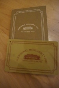 | The Fullerton Hotel was accorded a National Monument in 2015 printed on its keycard |