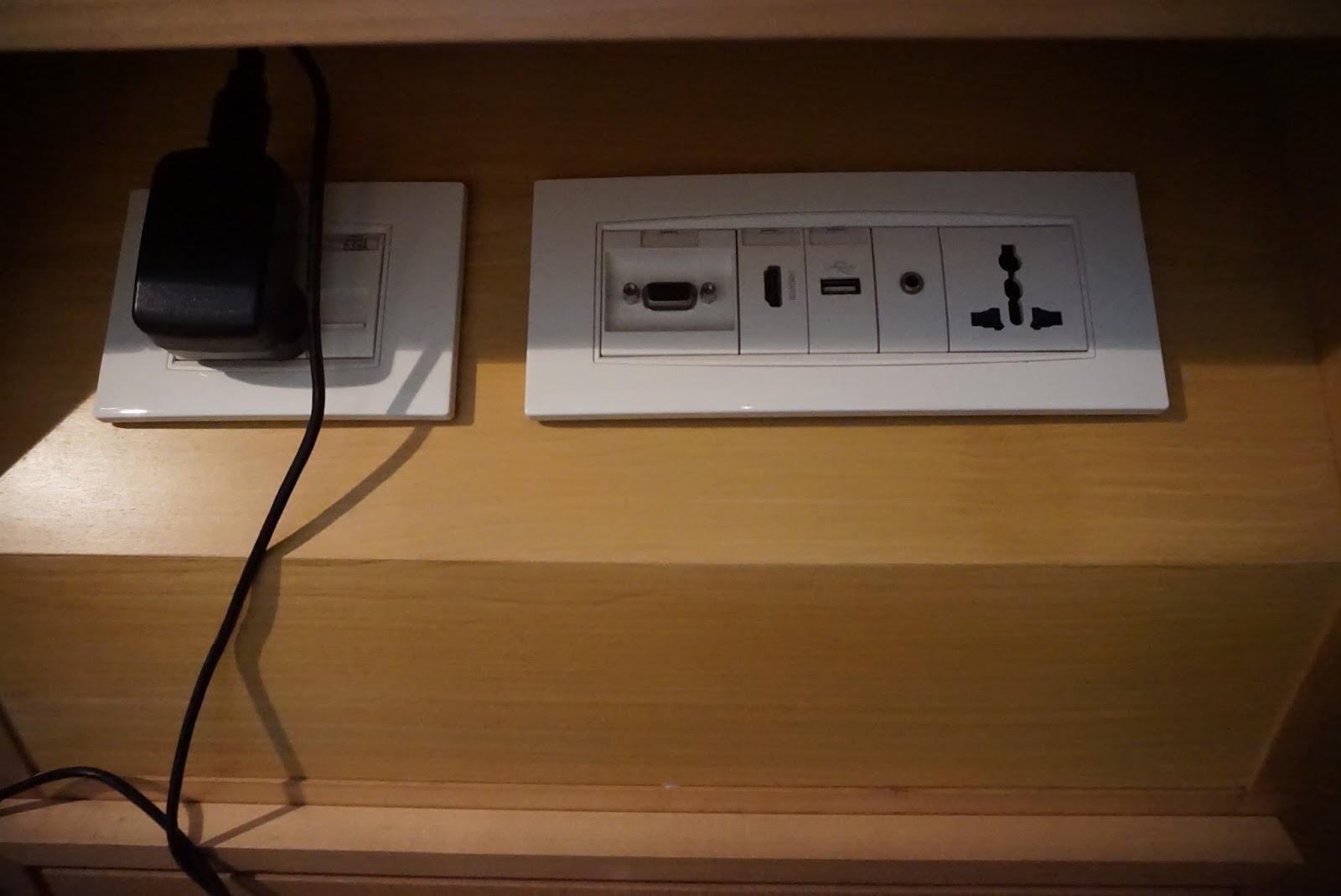 | Media input that connects to the TV located next to the work desk |