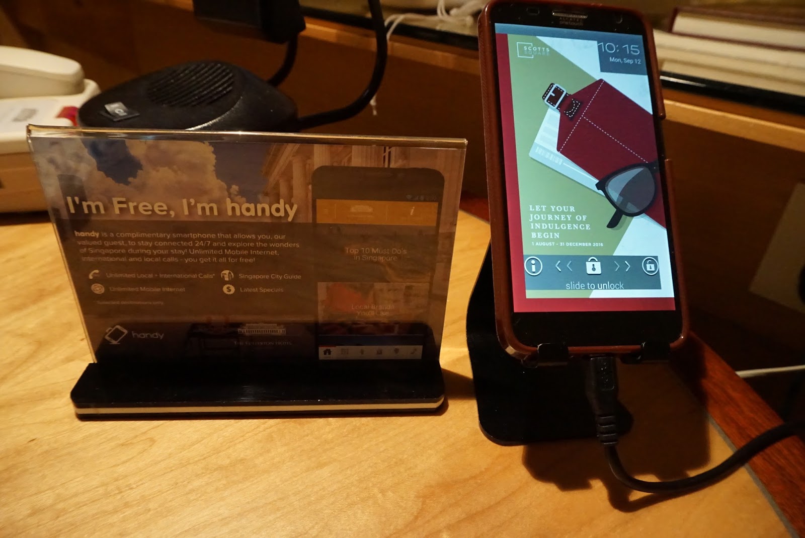 | The hotel provides this mobile device that allows guests to make unlimited local calls for free. This can also be used as a mobile wifi device |