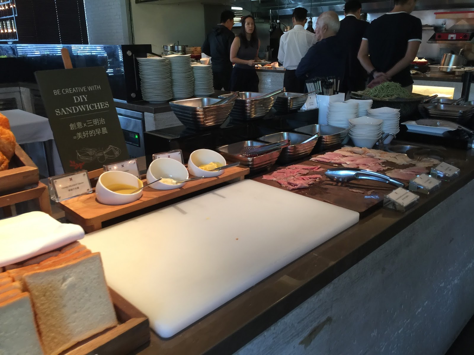 Breakfast in Humble House Taipei is served daily from 6.30 to 10.00 am at the Terrace Restaurant located on the 6th floor. There is sufficient variety for breakfast, catering to most of the guests staying at the hotel. On top of the traditional continental breakfast, there are also local dishes, such as congee and preserved vegetables being served for breakfast. I also find a small area where Japanese soba noodles are made available. There is also a counter where guests can create their own sandwiches. There is also a section serving salads and fruits.