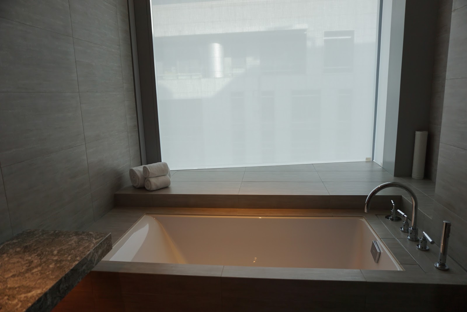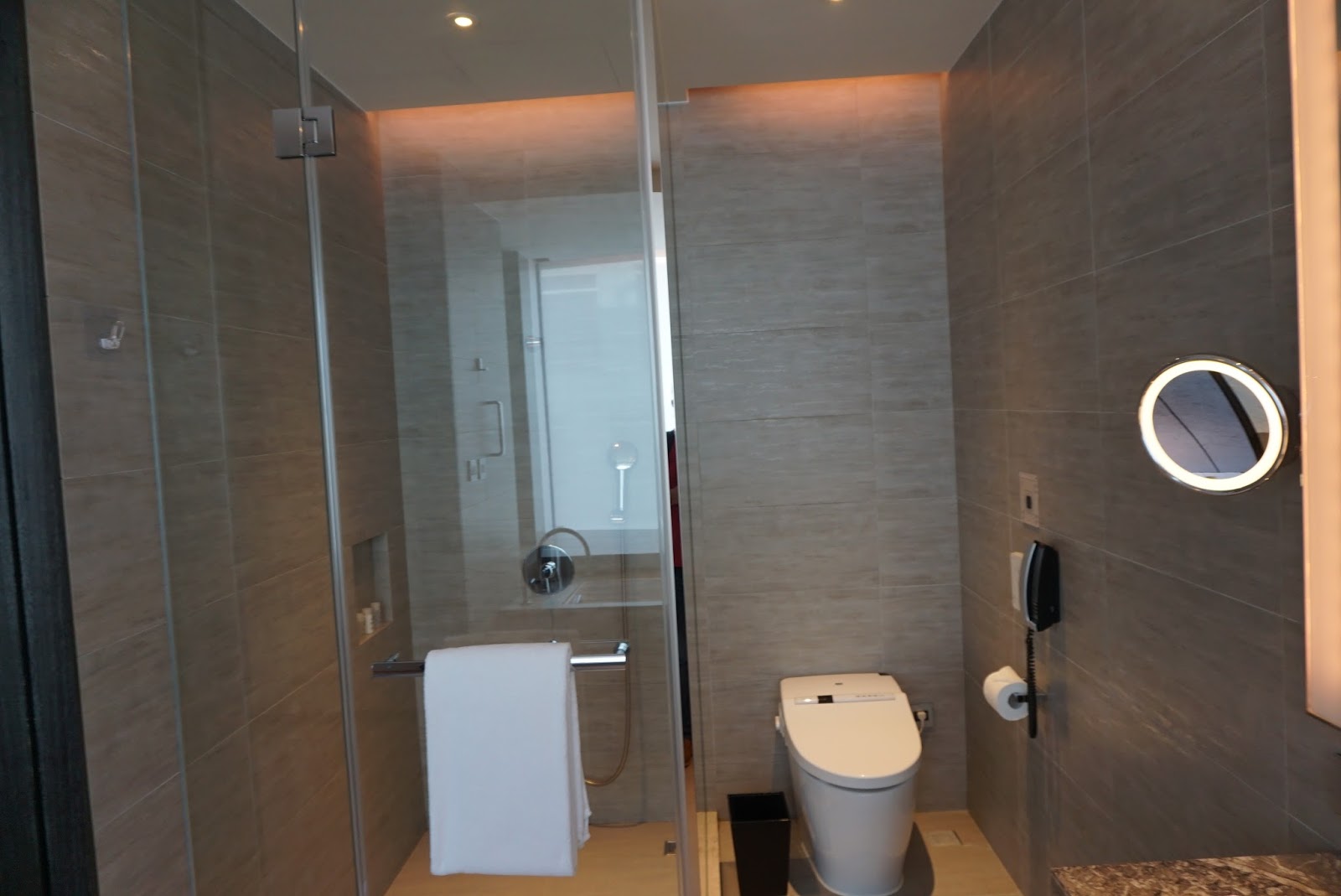 The Bathroom in the Premier Room in Humble Hotel Taipei is large! It is separated from the bedroom by a large two-panel sliding door, with floor to ceiling mirrors on both sides of the door. From the entrance of the bathroom to the right is where the bathtub is located, placed in front of a large window panel. Again with the same concept with the bedroom, the clever use of large window panel by Humble House Taipei makes the confined space feels spacious. The blinds to this window are also controlled electronically as with that in the bedroom. Facing the entrance to the bathroom, next to the bathtub is where one can find the sink area. The single sink countertop has heaps of space for guests to put their extra toiletries. I like the way Humble House Taipei placed additional toilet amenities. These amenities such as toothbrushes, razors, shower caps, etc. are neatly arranged in a drawer at the sink area. Next to the sink area is where one can find the toilet. The toilet is fully automatic, with a touch of a button on the control panel placed on the wall next to the toilet bowl, the lid is being lifted. The toilet seat is also warmed, guests do not have to sit on a cold toilet seat every time they use the toilet. The toilet also has washlet features. Next to the toilet bowl is a large walk-in shower area, enclosed with glass walls, separating the wet and dry area. Despite using the only regular shower head, the pressure for showering is never weak.