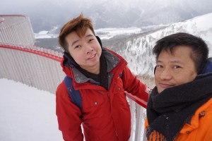 The snowing weather did not deter us from taking wefie while walking towards the Cloud Walk