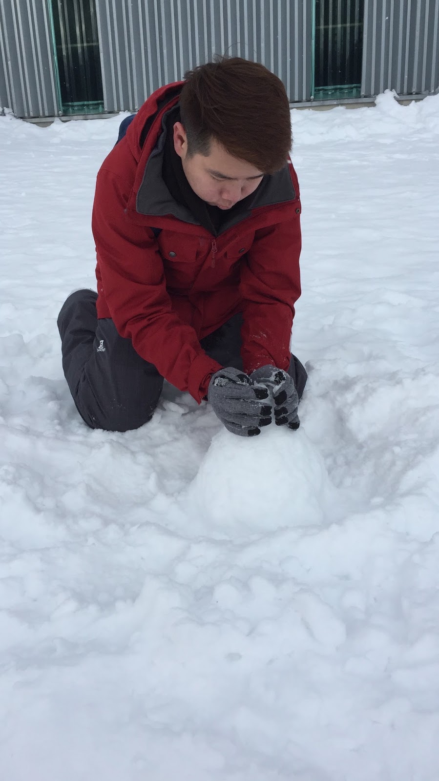 My friend building a snowman in Hoshino Resorts Tomamu
