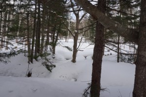 The snow-covered forest on the path towards the Ice Village