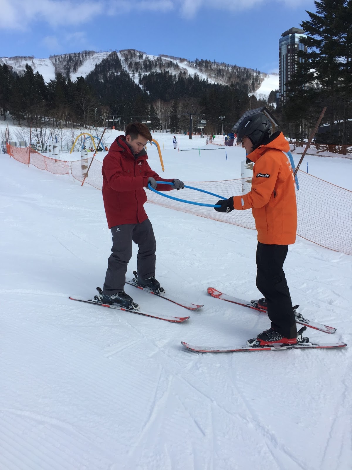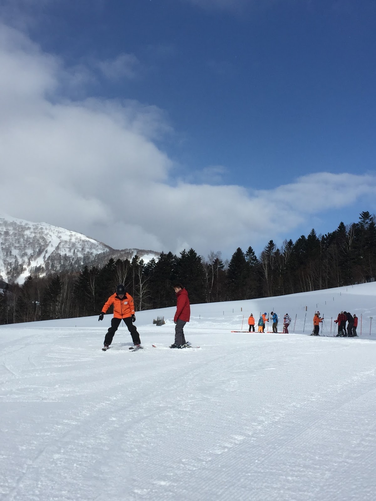Our instructor guiding my friend down Nipo Slope for the first time, while I slowly ski down the slope taking the opportunity to snap some pictures