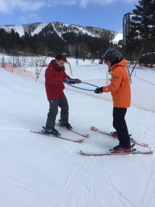 Our instructor perfecting my friend’s braking technique while I ski behind them happily snapping pictures