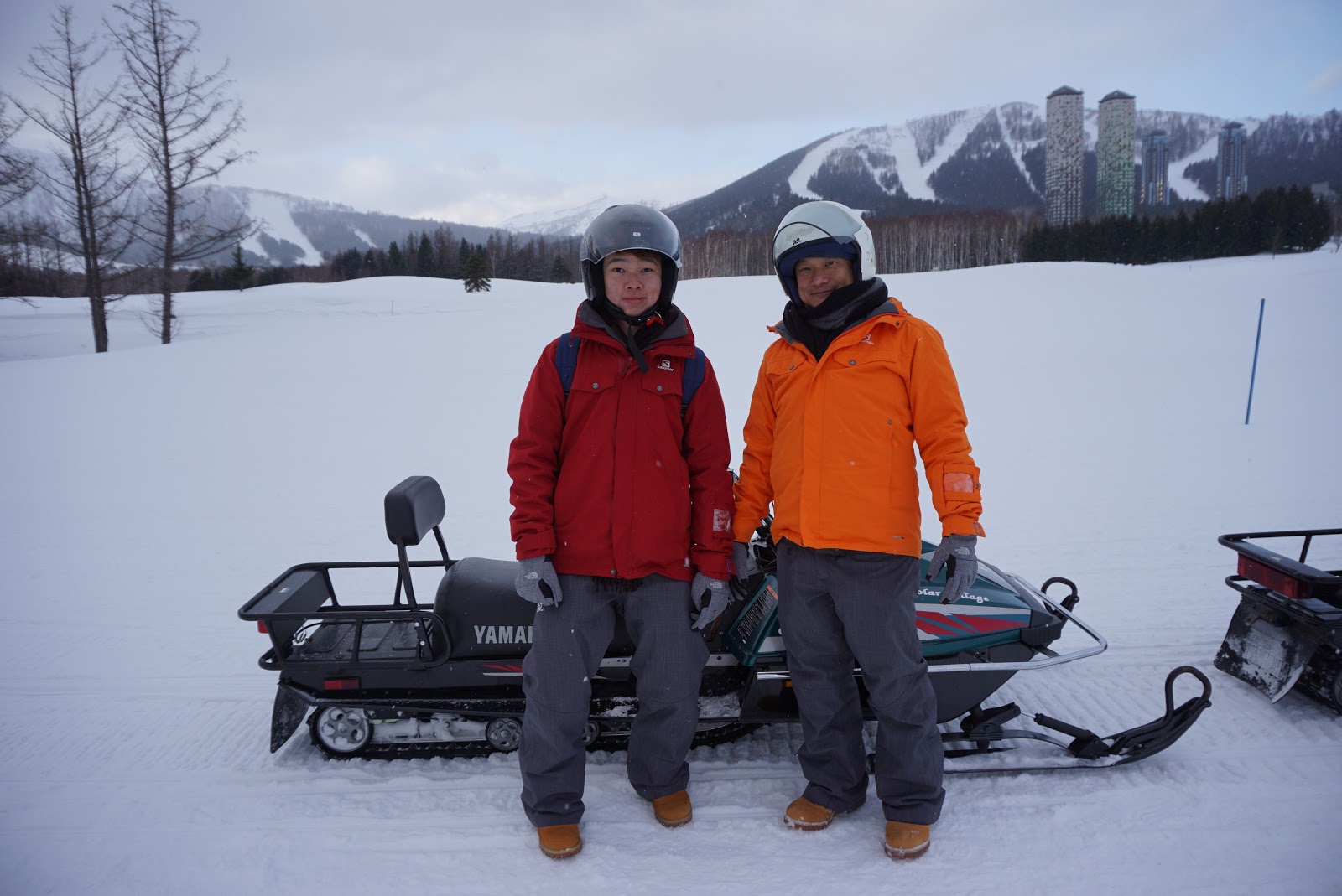 Walking back to our hotel, we thought the day is still young and headed over to the GAO Outdoor Activity Centre to try driving a snowmobile. We opted for the 10 min option. Before driving the snowmobile, we were given simple lessons on driving the snowmobile. We were also instructed to follow the guide closely and not to overtake each other. Driving the snowmobile was easy, the left handle controls the brake, while the right handle controls the acceleration of the machine. The steering of the snowmobile was heavier than I expected. We were led by the guide to ride around an open area in front of our hotel. Riding up and down slopes as well as riding around the bends, it was fun riding the snowmobile. We were led to stop at a point where the guide took some pictures for us with the Tomamu Tower Hotel in the background. After taking some pictures, we headed to the activity centre that marked the end of our 10 min snowmobile ride.