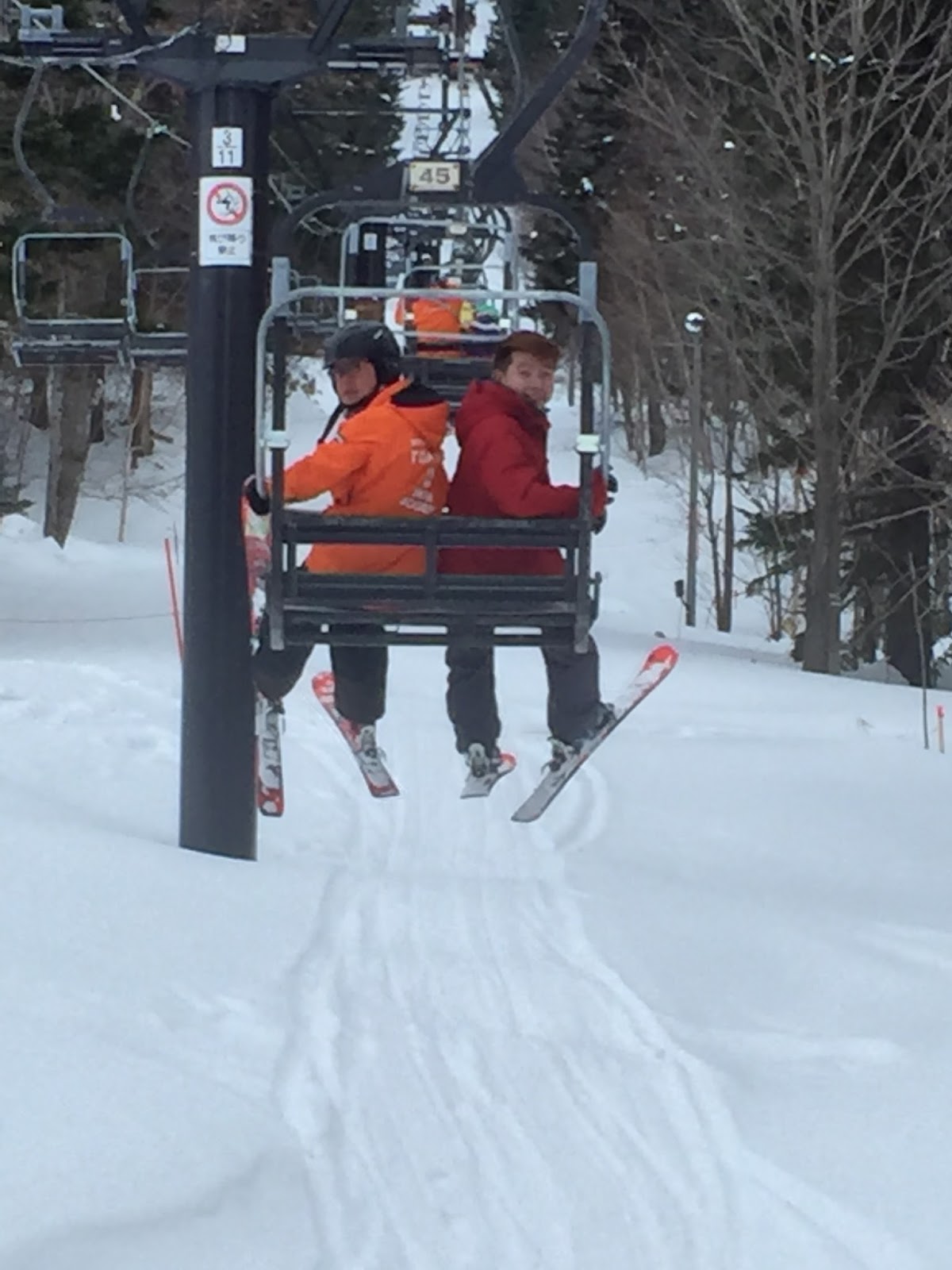 My friend and our instructor on the chairlift on our way up Nipo Slope for our second attempt down the slope
