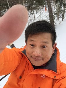 Taking a selfie on the Nipo Chairlift up to the top of Nipo Slope in Tomamu