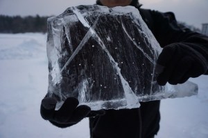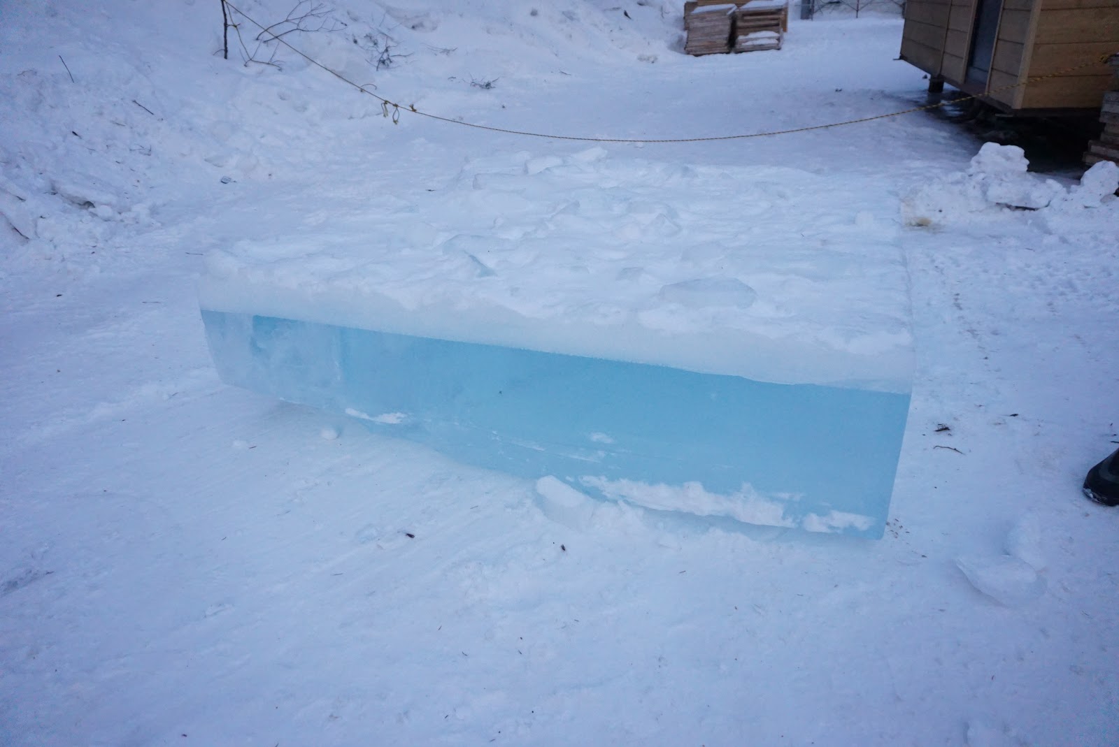 | A block of ice that was extracted from Lake Akan. Our guide explained the ice beneath the snow-covered frozen Lake Akan |