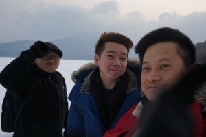 | Taking a wefie with our guide on the frozen Lake Akan |