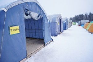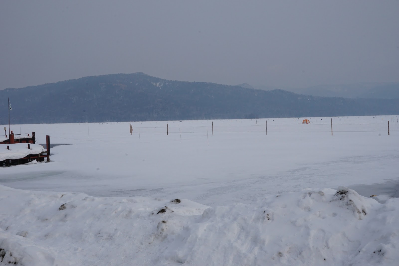 | Tents that people can use to shield themselves from the cold lake breeze while smelt fishing |