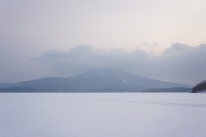 | My friend on Lake Akan with the male Mt Oakan in the background |