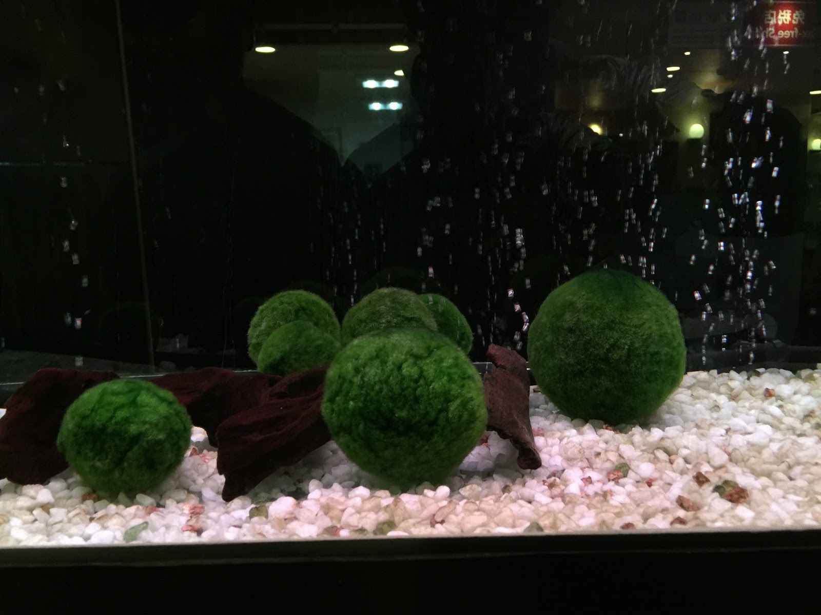 | Marimo balls, an icon of Lake Akan, on display in the hotel |