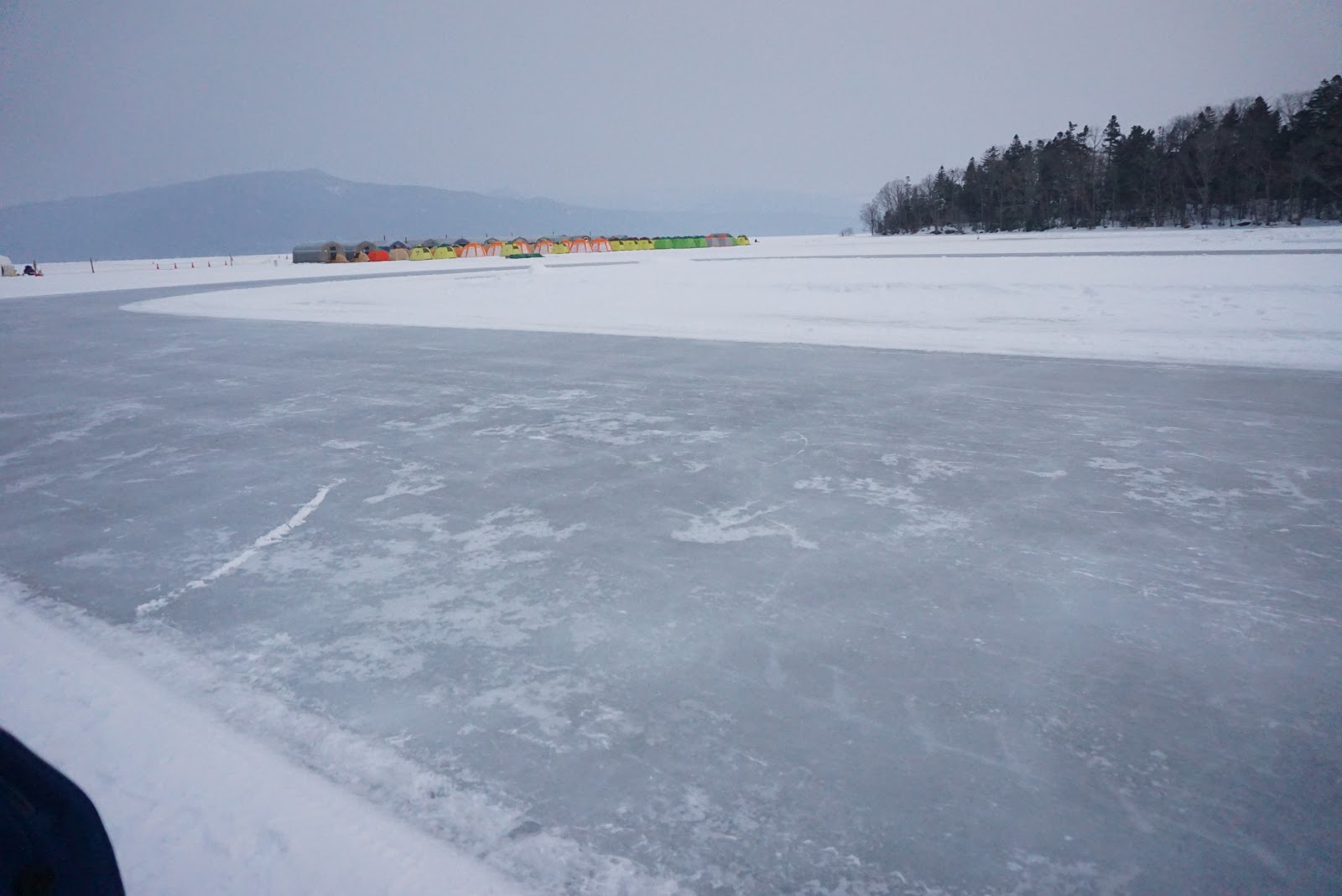 I thought it would be a good experience walking on a frozen lake. We met our guide at the Akan Tourist Information Centre at 6.30am. We were told that we will not see frost flower due to the temperature on Lake Akan is warmer than expected at 0℃. Our guide also told us that Lake Akan is warming up as the winter season is coming to an end. Despite not able to see frost flower, we were not disappointed as walking on a frozen lake is a first time experience for us. Before bringing us further into the 13 km sq Lake Akan, our guide brought us to an area nearer to the shore of the lake, explaining to us that beneath the 1m snow-covered lake lies a 7m think ice that occurs every winter when Lake Akan freezes. Only when achieving this thinking can the lake be sufficiently stable for activities such as walking, smelt fishing, ice skating and snowmobiling to take place. The guide also brought us to some tents explaining to us how the smelt fishing works, before heading out further into Lake Akan to the nearest island Kojima Island to shore. By the time we were at Lake Akan, the sun seems to have risen. I was a little disappointed not able to catch the sunrise over the frozen lake. Nonetheless, that did not deter me from having a great time walking on the frozen Lake Akan. As we were walking towards Kojima Island, our guide explained that there are four islands on the lake, with Churui Island being the only island that visitors can visit the Marimo Exhibition Centre. Marimo is a rare growth form of the moss where the algae grow into large velvety looking green balls. These green moss balls have become the mascot of Lake Akan.