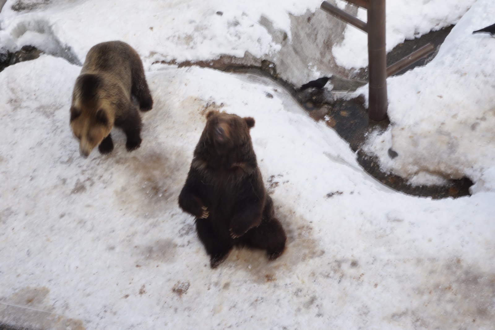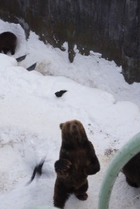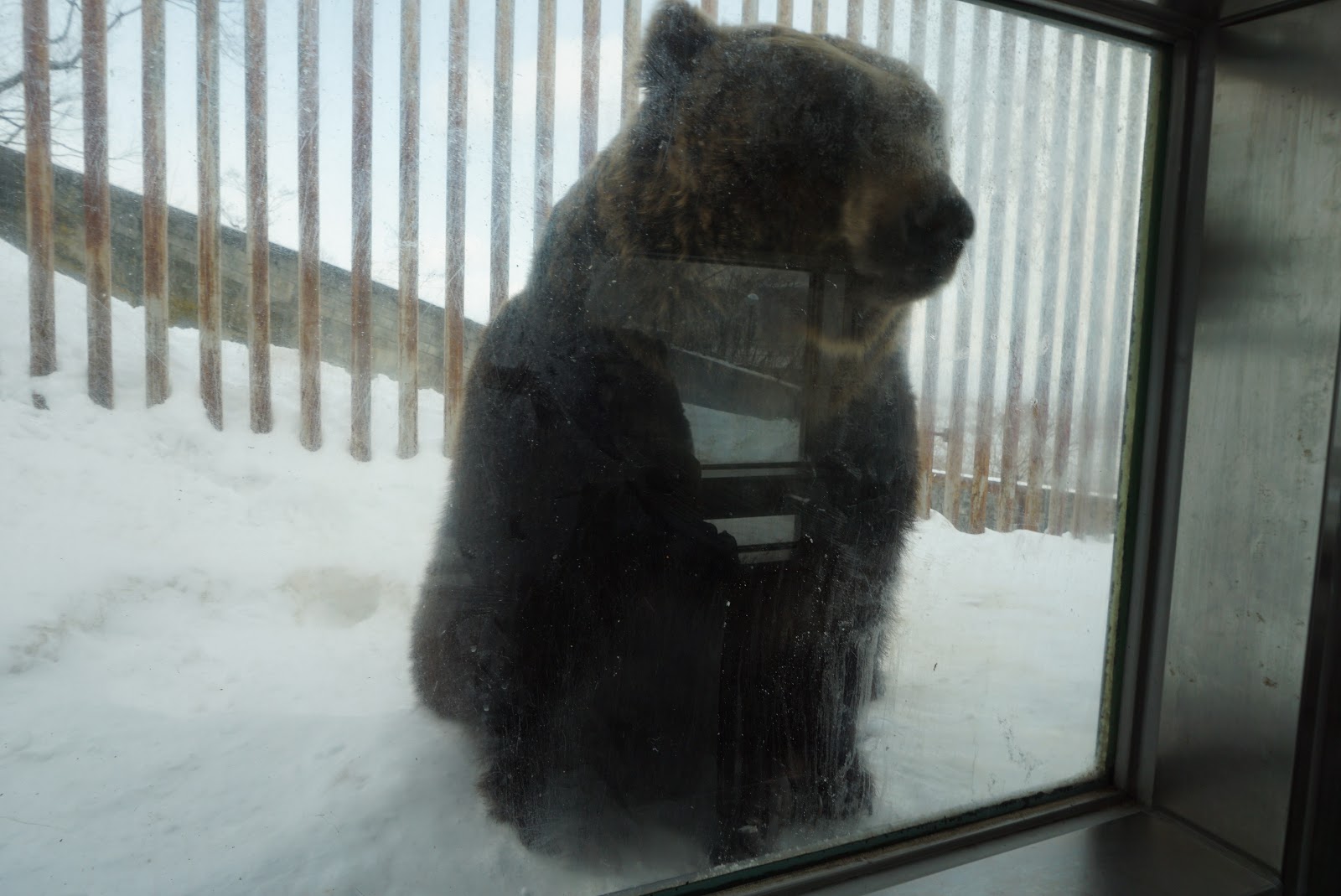 | Hokkaido Brown Bear waiting patiently for my friend to insert the food into the feeding device |