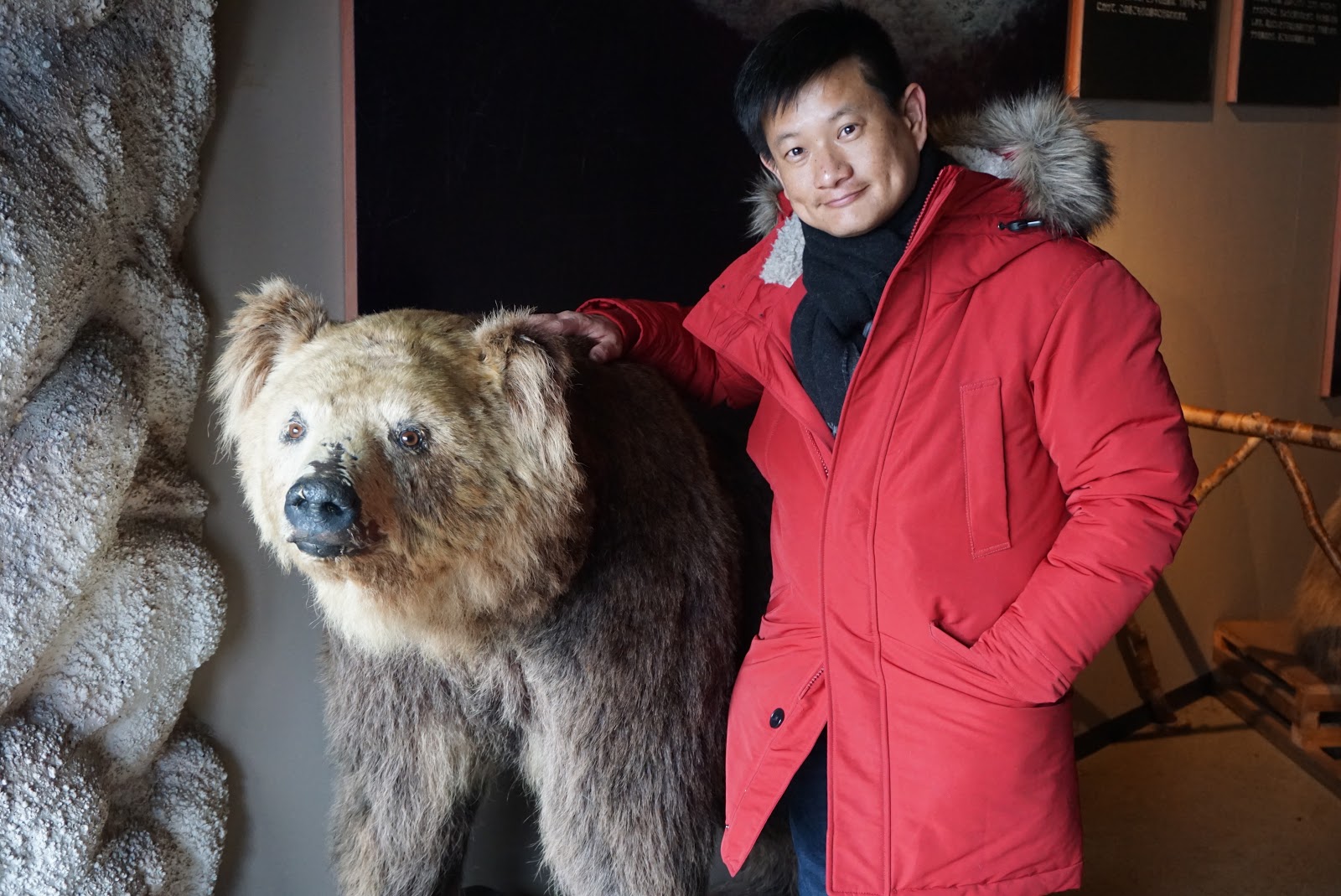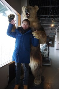 | My friend posing with a brown bear in the Bear Museum |