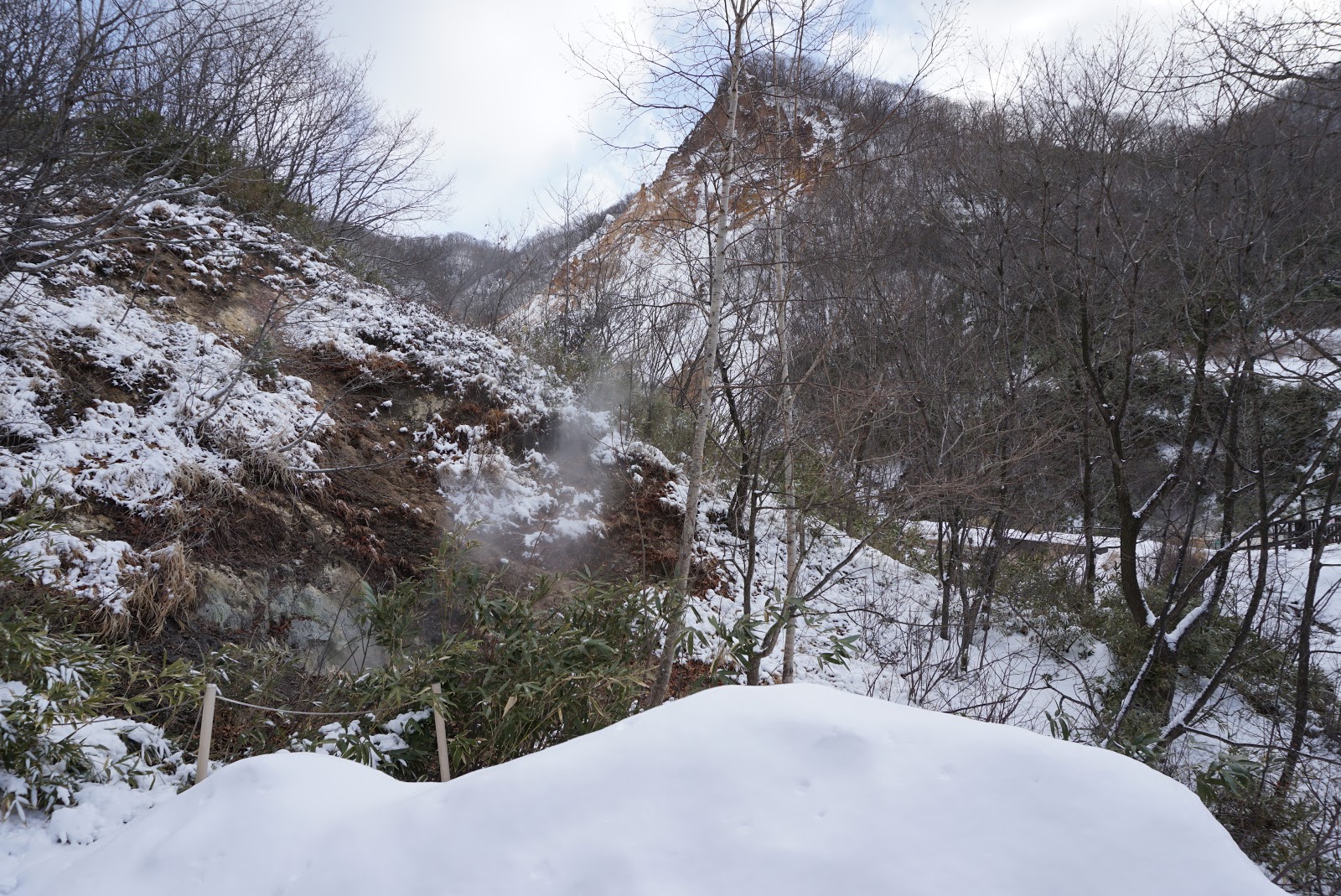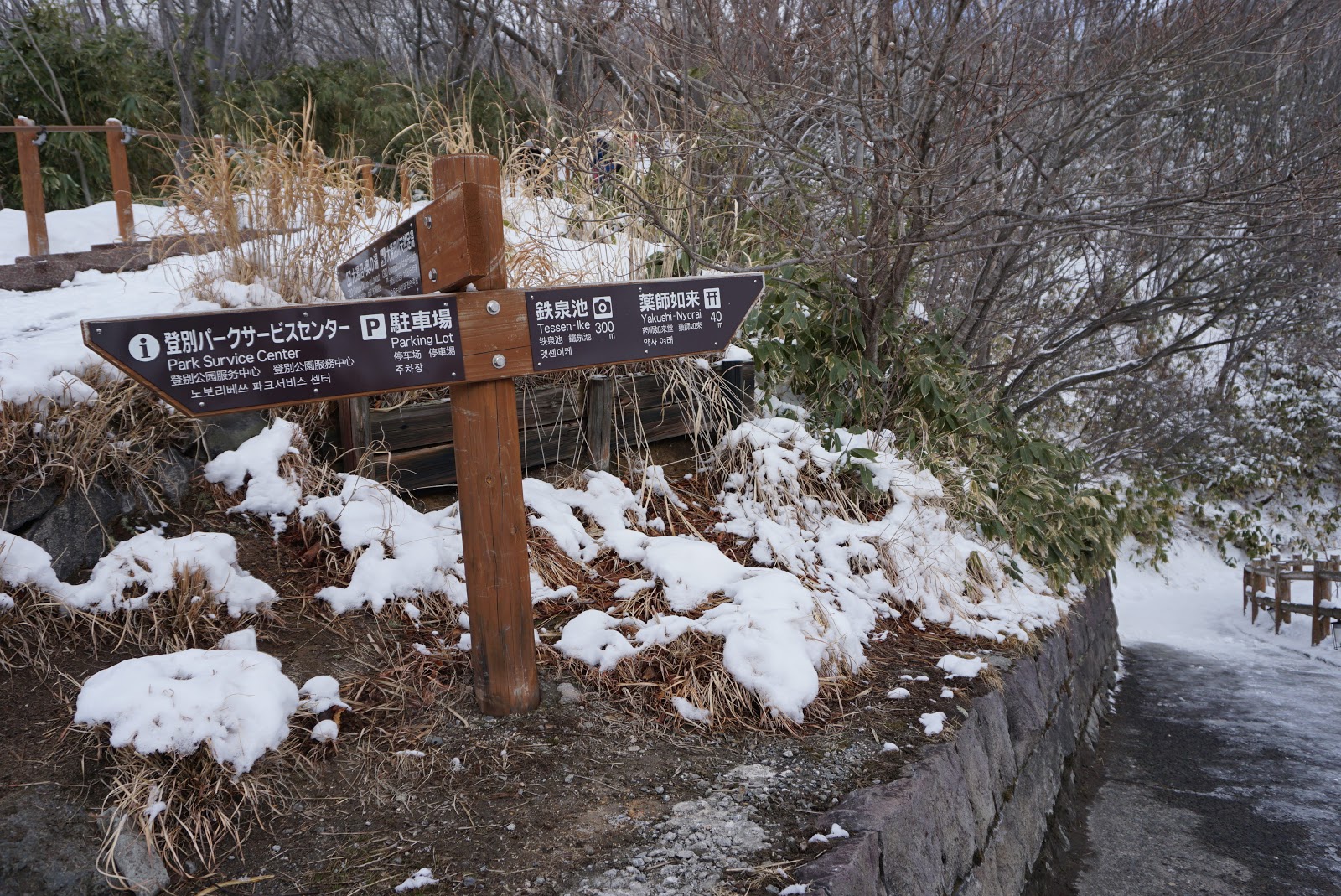 The path led us to a point where we can see the detoured path that led us down to the valley floor. Standing at the Haridashi Lookout, taking in the awesome view of the valley, I felt a sense of peace partly due to the lack of crowd here. The viewpoint offered us a glimpse of the power of the explosion that made Jigokudani what it is today. There is thick snow at the viewpoint and its surrounding. This is a perfect spot for photographs. As we were completing the Jigokudani Pathway loop back to the entrance of Jigokudani, we came across a sign in front of a pathway. This pathway the Oyunuma Pathway which is closed during the winter season. My friend and I then followed the path through the thick snow which led us back to the entrance of Jigokudani.