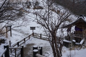 | The snow-covered Jigokudani |