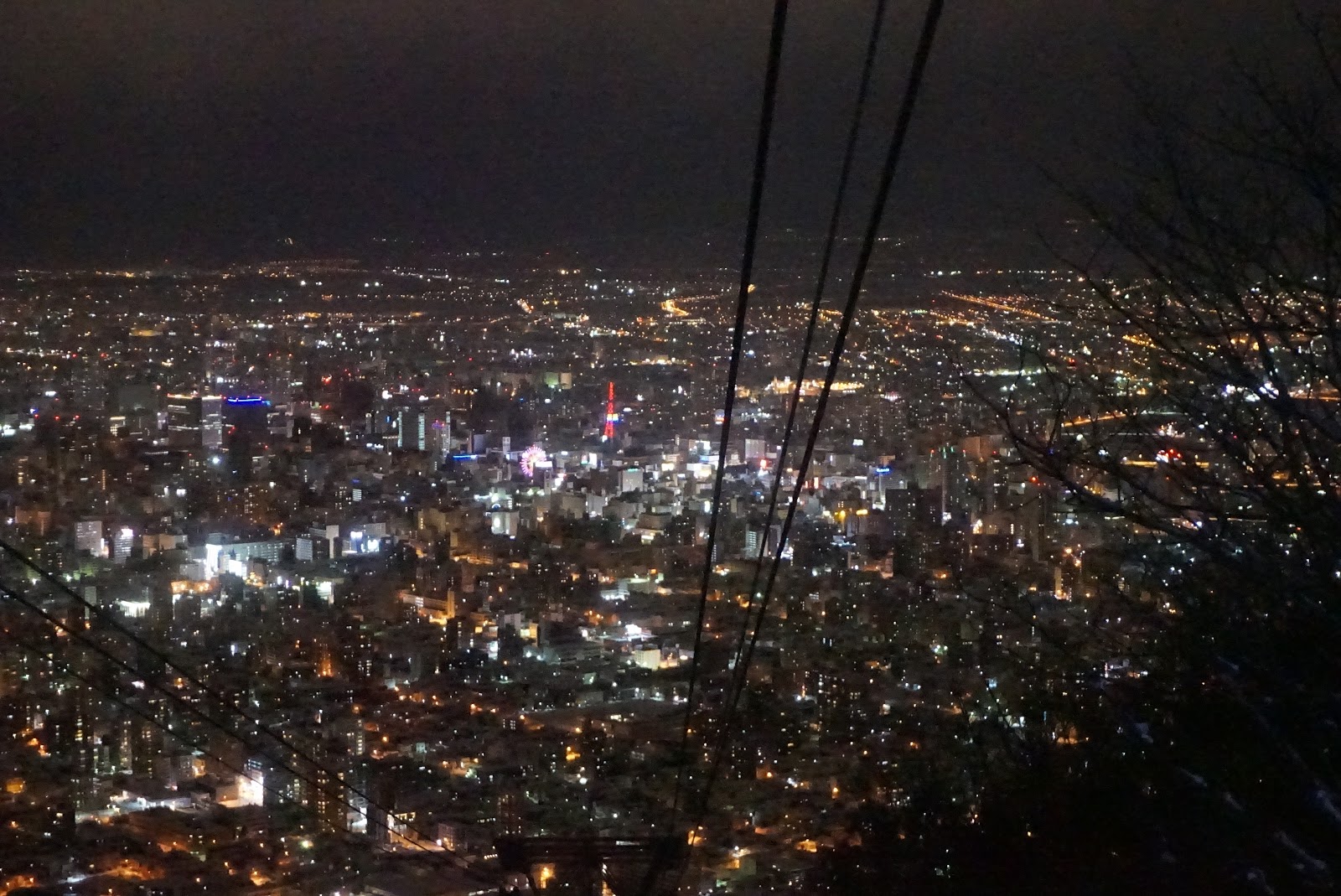Night view of Sapporo City from the Ropeway as we descend. If you look closely you can see Sapporo TV Tower (it is lighted up in Red)