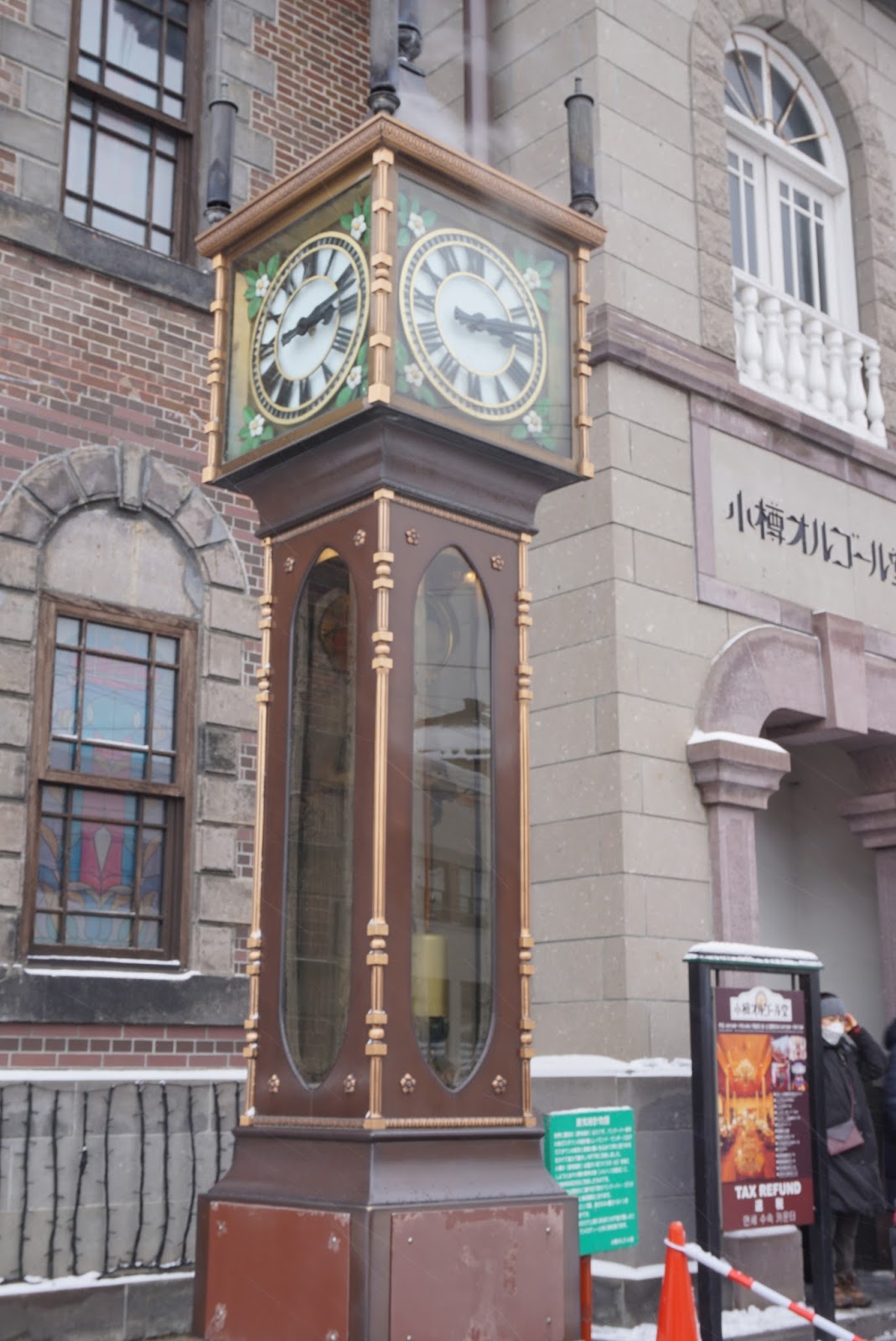 The steam clock outside Otaru Music Box Museum which chimes every 15 mins