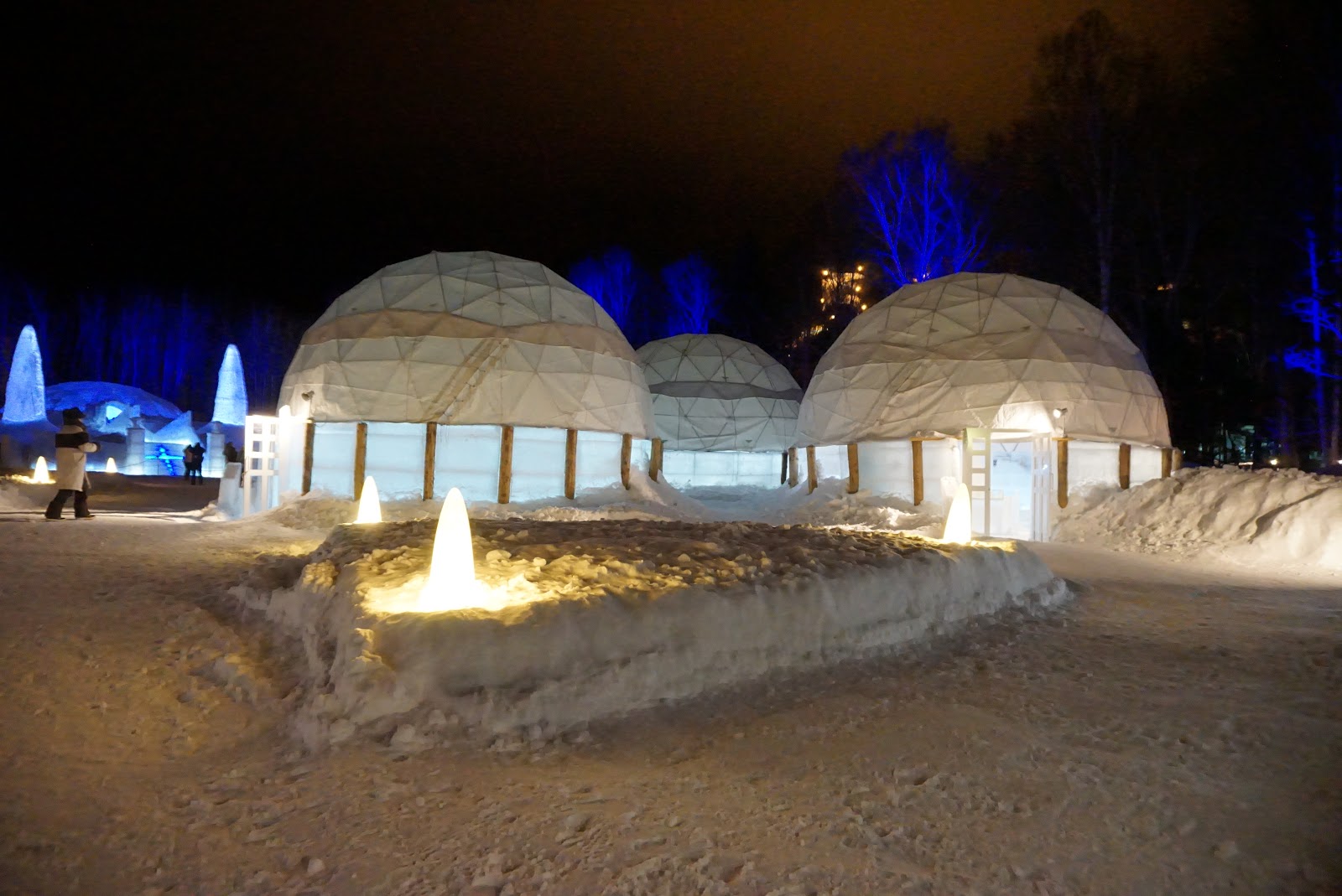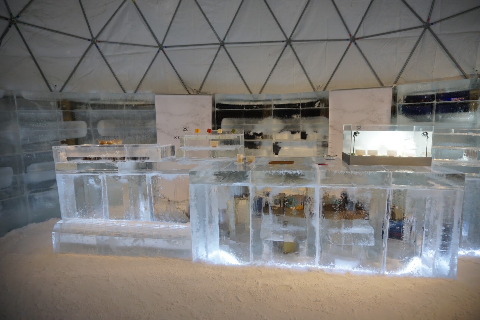 | The Ice Village is made up of ice huts such as these, the external look the same, but each hut offers different things inside |