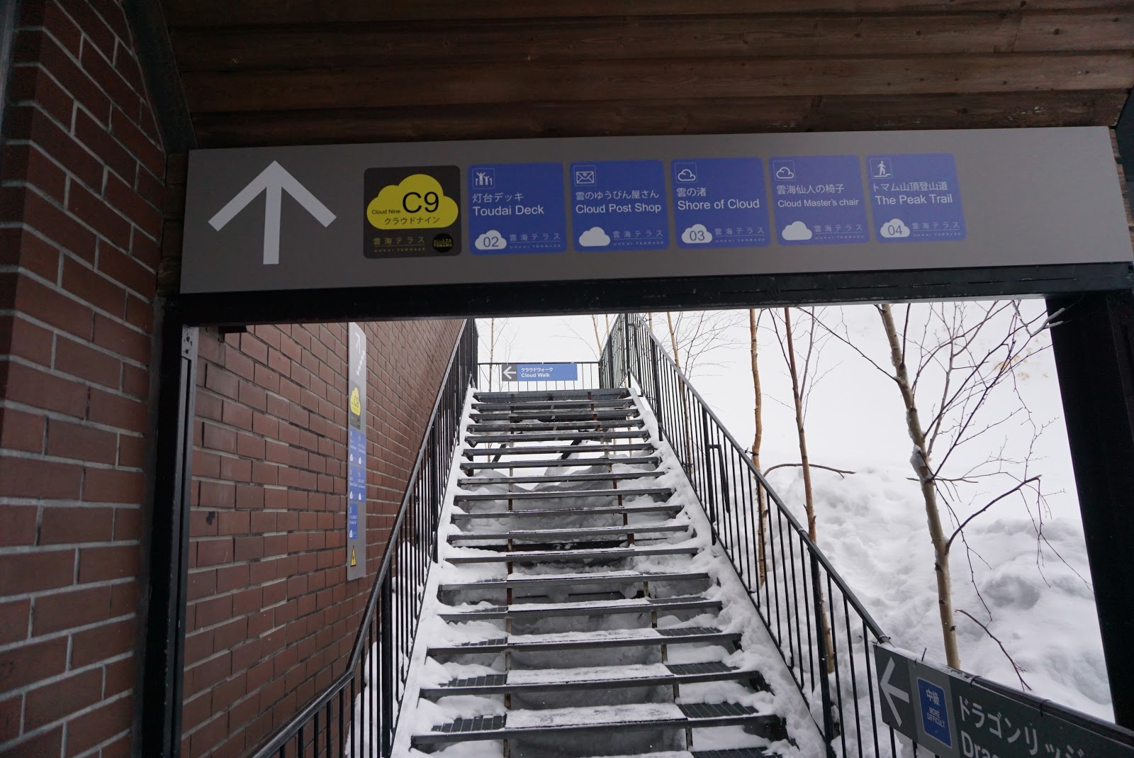 Exiting the summit gondola station immediately is the Terrace of Frost Tree. A small shop housed in a shipping container sells food and drinks to visitors was placed at the backdrop of the Terrace, where the mountain range that surrounds the ski resort was in full view. The ski resort seems to form the heart of the mountain ranges, the view is especially tranquil when the entire area is covered with snow. One can seem to find peace looking out from the Terrace of Frost Tree up in Unkai Terrace.