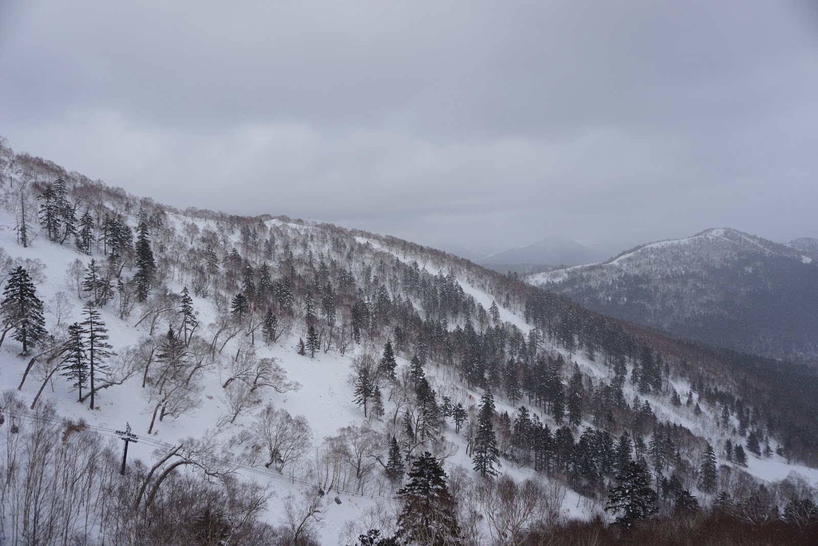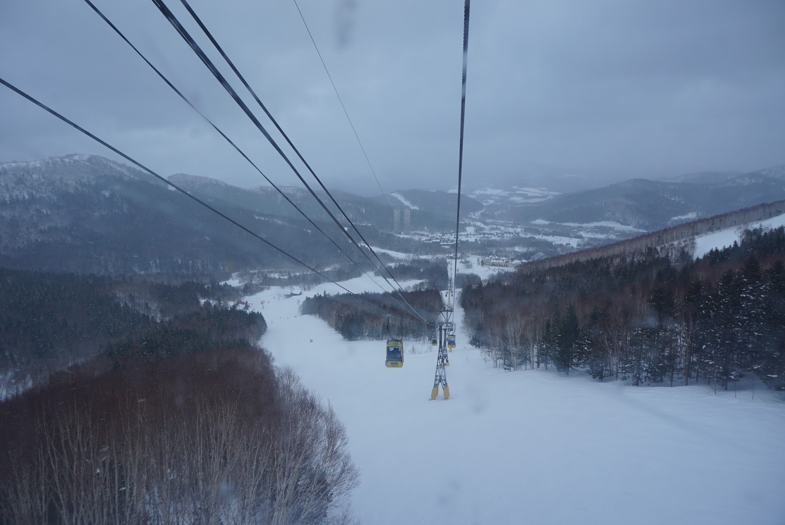 | The beautiful winter scenery as we ascend Mt Tomamu in the gondola |