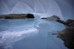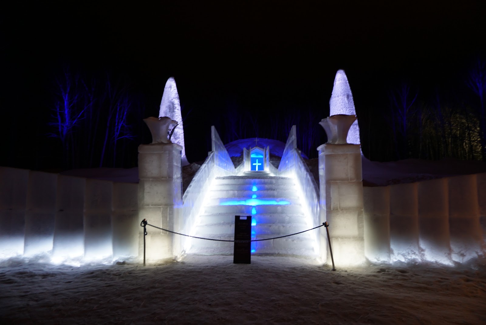 | The Ice Chapel looks beautiful especially bathed in white and blue lights |