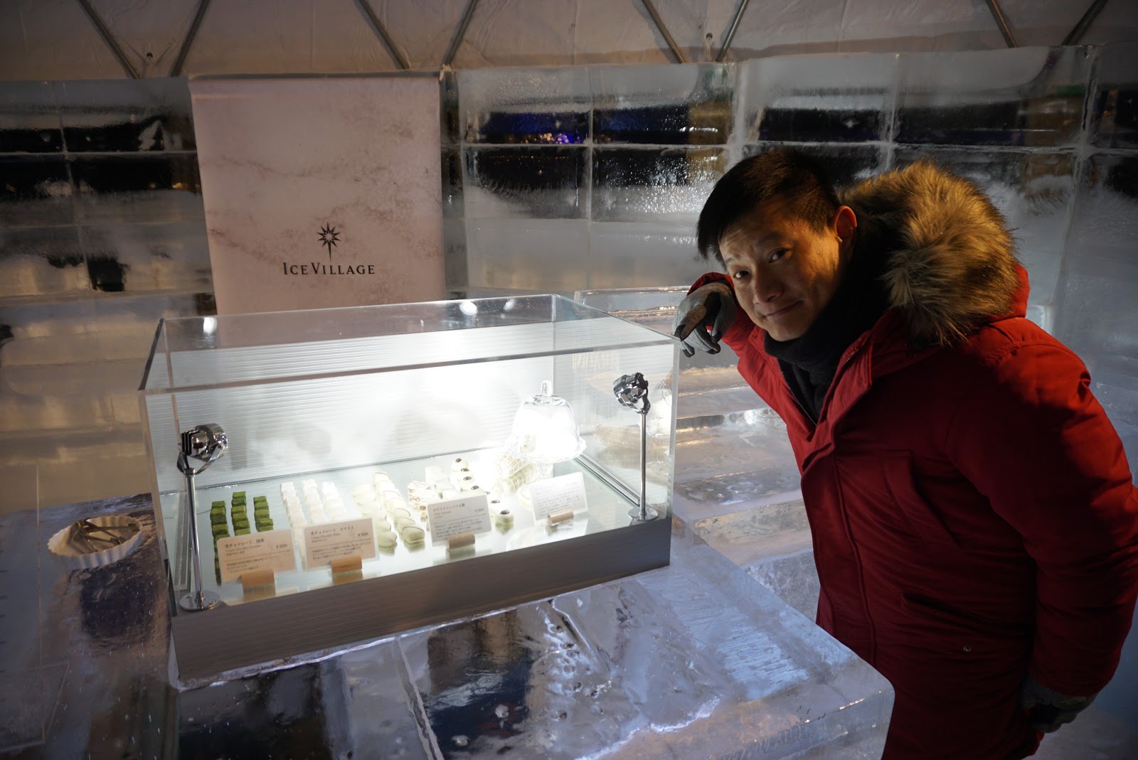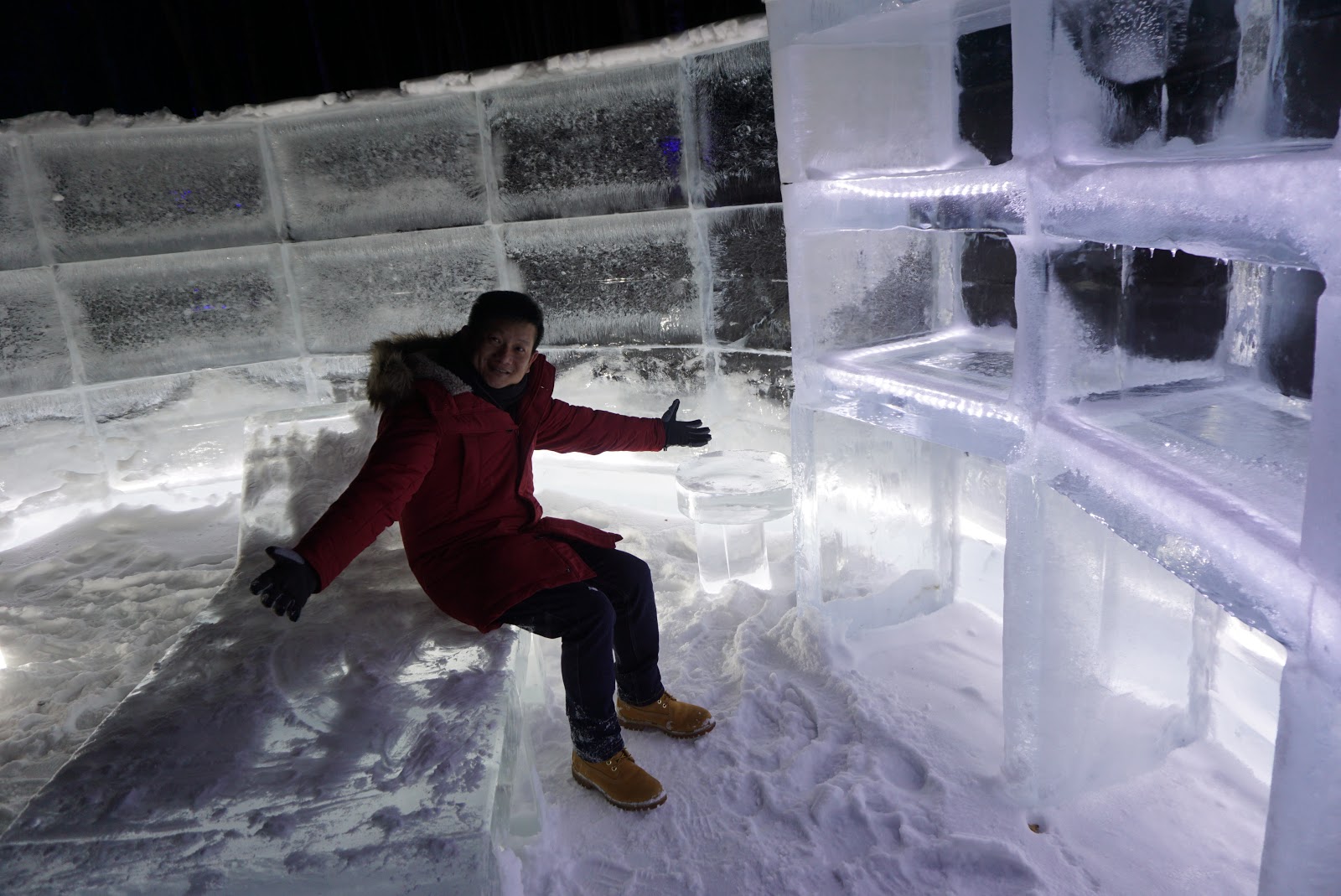 The Ice Village is essentially a place where all the buildings are made of ice. Even the furniture inside these ice huts is carved out of ice. These buildings housed shops. There is an ice hut sells cocktails, where visitors can carve a glass out of ice and the bartender would pour your choice drink into the glass that one carved. There is a shop that sells flowers, frozen in ice. And another that sells desserts. At the heart of the Ice Village is the Ice Chapel. It was closed for a private wedding ceremony at the time of our visit. Besides the Ice Chapel is a single room Ice Hotel. The hotel room has a bed that is carved out of ice and a dining table as well as a couch that is made of ice. Even the chandelier in the room is made of ice. There is another door that leads to the backyard of the hotel room. Here lie 2 deck chairs made of ice and a small side table for one to relax on. I wonder if anyone would even lie on these deck chairs as the climate is simply too cold to sit on these icy chairs out in the open.