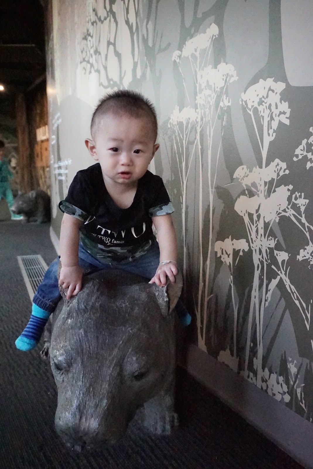 | My nephew – Baby Ryker posing on a fake Tasmania Devil |